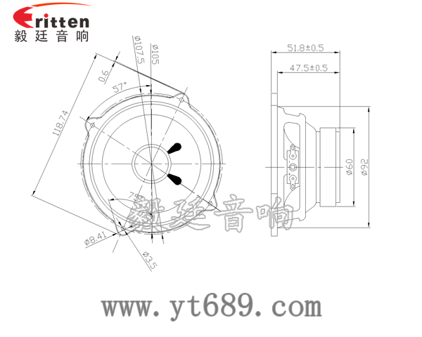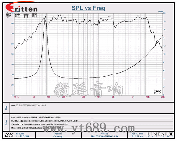 此款优异用于4寸20W多媒体喇叭,汽车音响单元上,灵敏度85dB,低频厚实、震感强,东莞毅廷音响研发团队开发出外观新颖,音质优美。