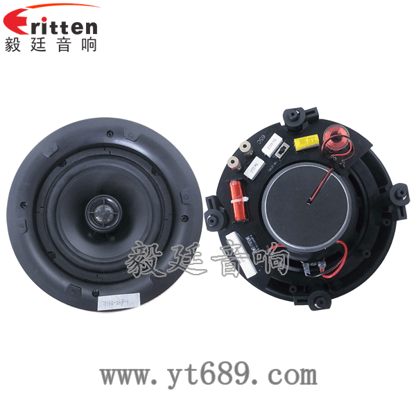 此款6.5寸天花吸顶喇叭,顶级元件±3dB分频器,可完美的控制扬声器的中、高、低音,对角四个可旋转卡扣柱,用于天花喇叭倒挂方式安装,方便牢固,频响宽,失真小,信噪比好。
