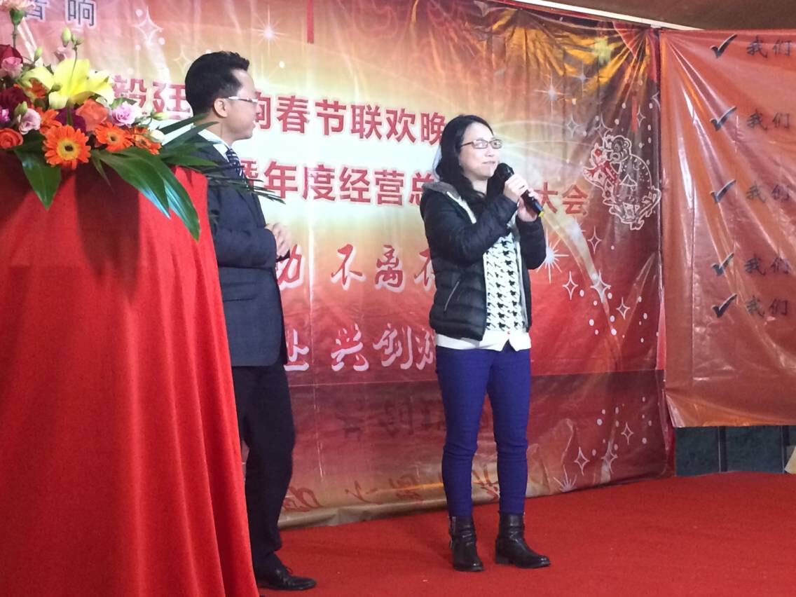 颁完奖后,由我们刘总发言勉励,给我们毅廷喇叭厂加油,以及公布我们毅廷海外部的蔡小姐的业绩,600多万,这是一个非常高的业绩,感谢她,祝福她