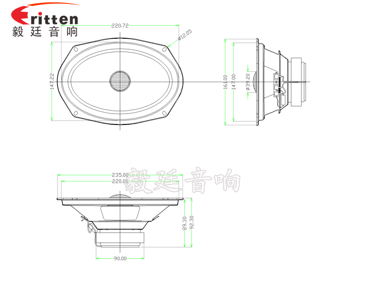6X9寸铁盆架全频喇叭,采用了高性能的铁氧体磁钢,给喇叭提供了充足的动力,和稳定性;