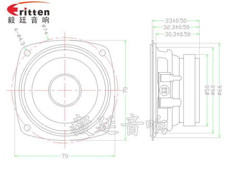 70mm苹果形铁盆架外磁全频喇叭,采用了高性能、高密度铁氧体,磁性强,自然清澈;