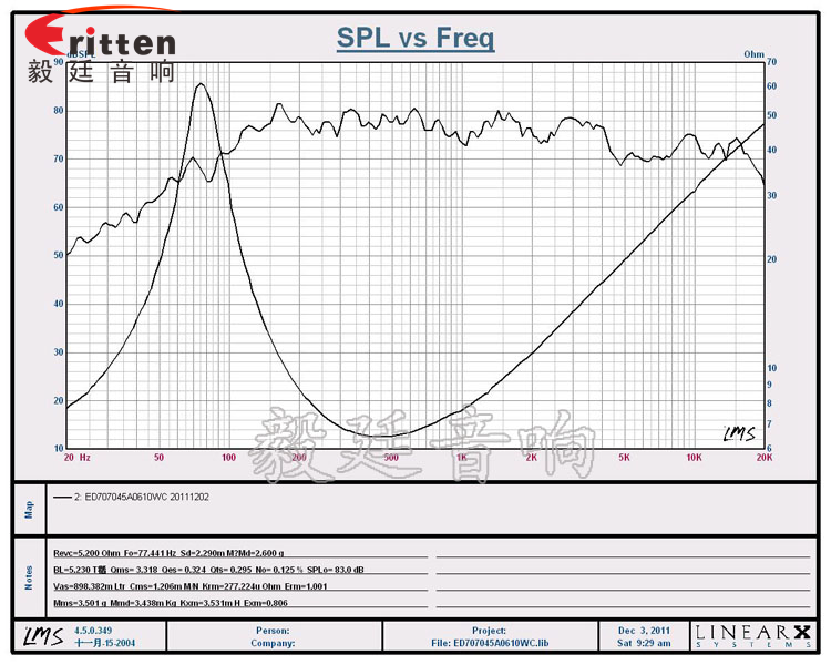 ★频率范围(freq response):77Hz~15KHz