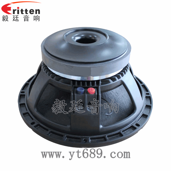 18寸圆形铸铝盆架外磁重低音喇叭,采用的是盆架以精钢冲压成型,涂覆黑色防氧化漆,设计新颖,音色饱满。