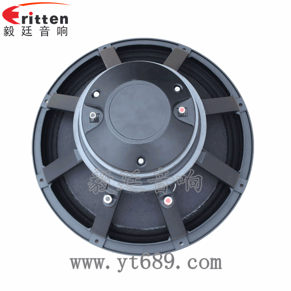 15寸圆形铸铝盆架外磁双磁重低音喇叭,采用表面涂覆精密的雅典黑烤漆,稳固牢靠,声音更具稳定性。